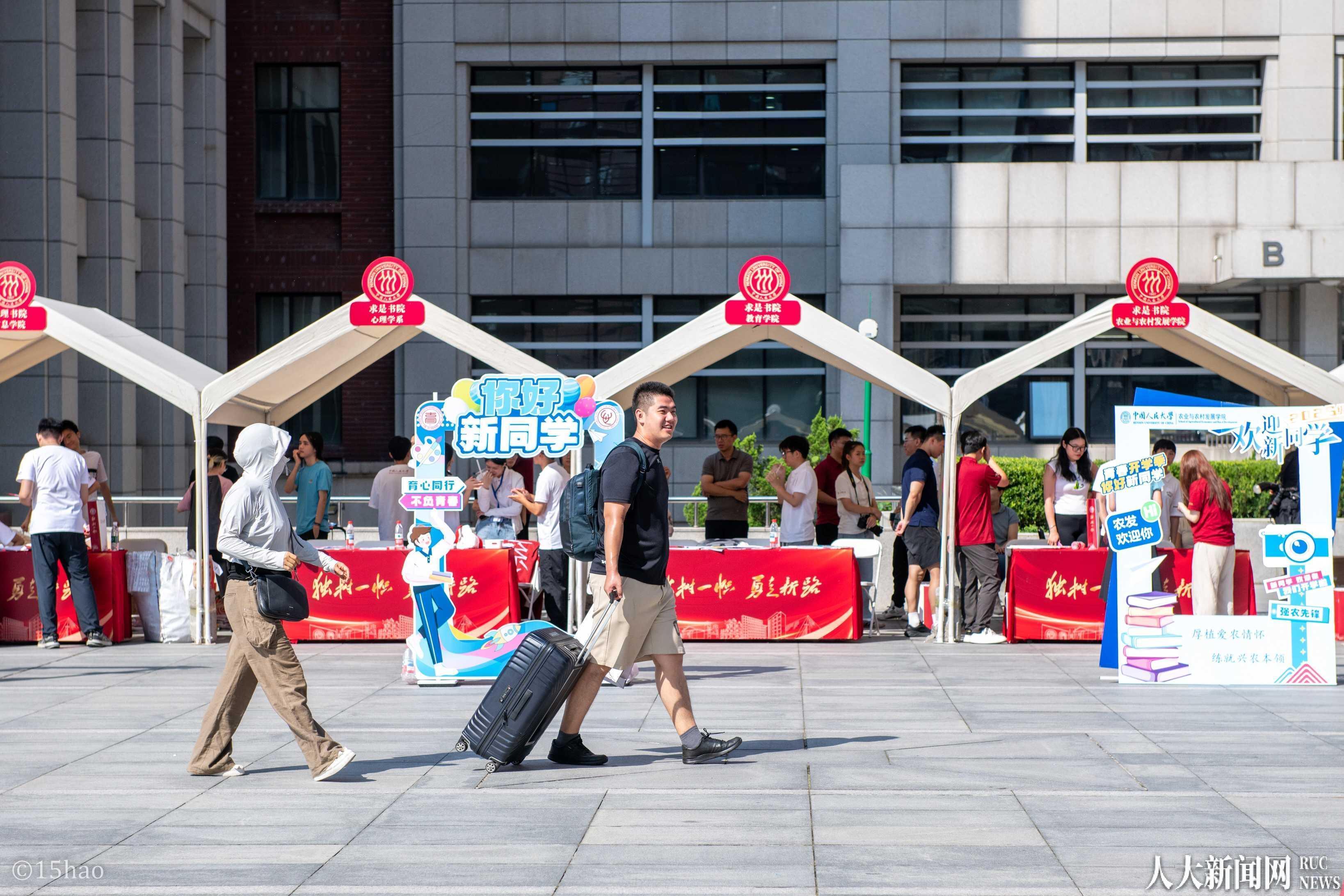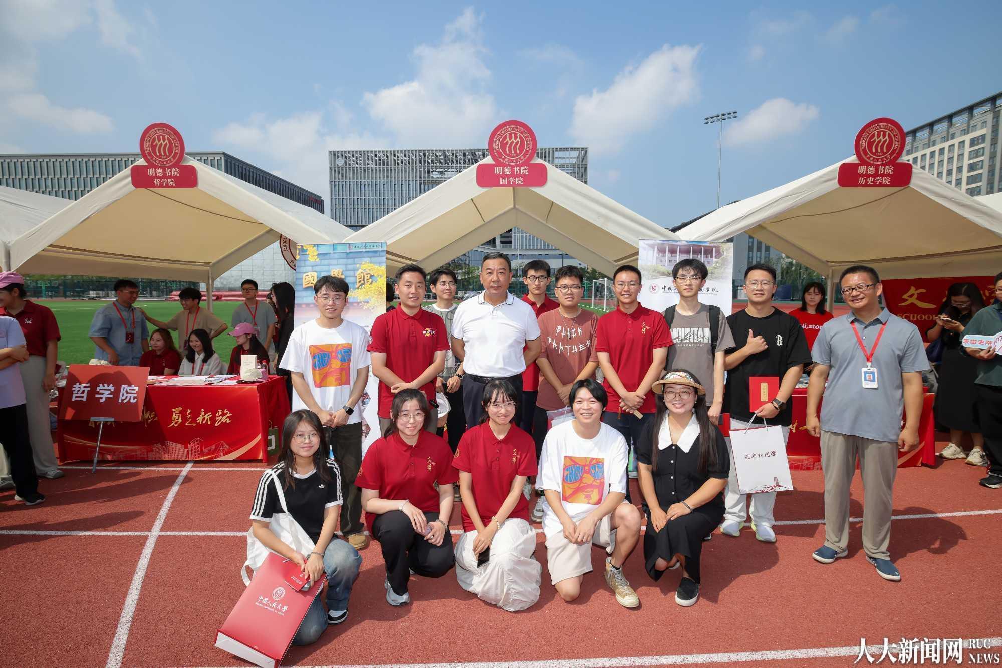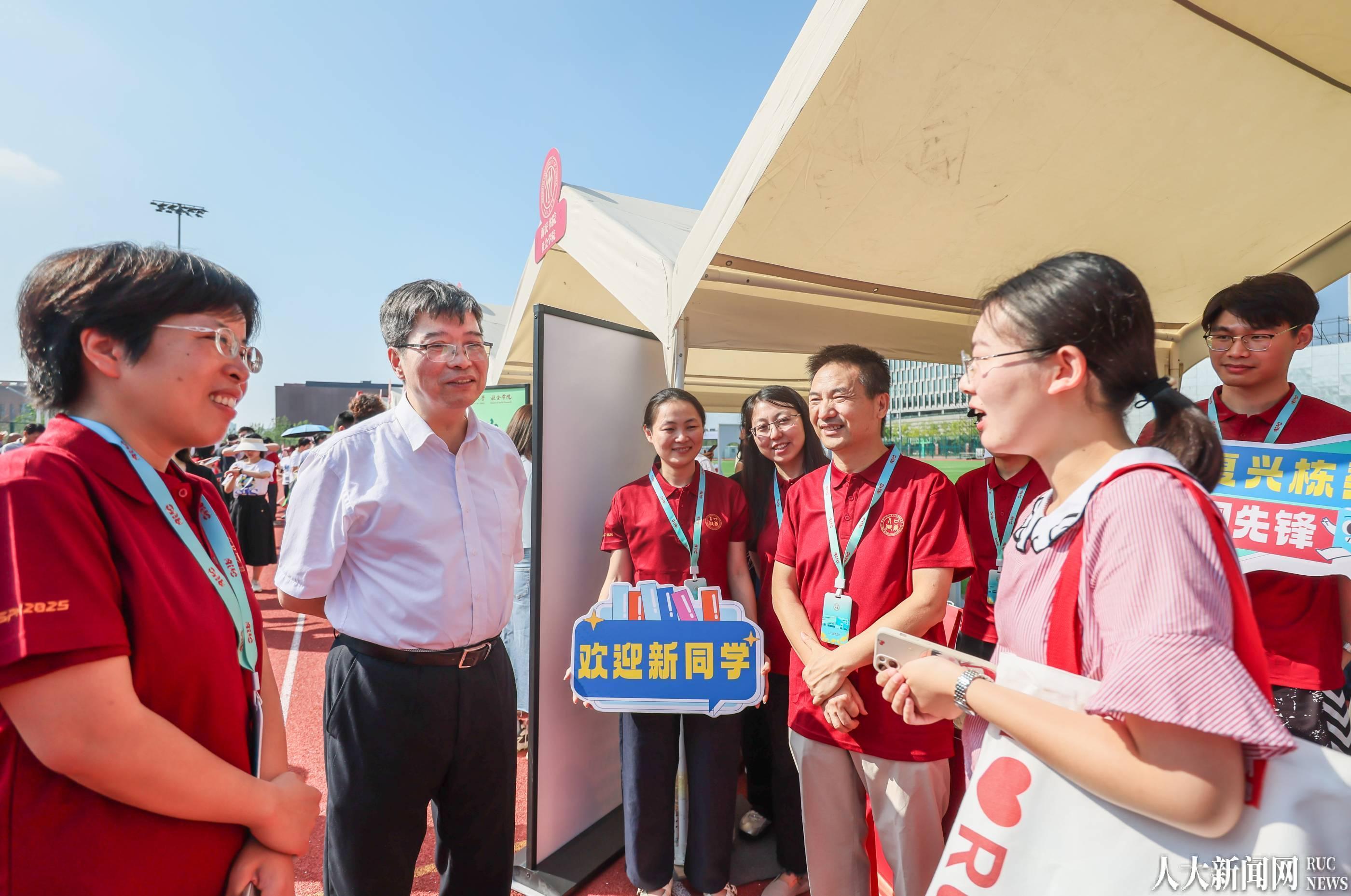 在中关村校区,学校党委常委郑水泉、何力、青格勒图、宋东霞走访研究生新生集中报到的明德广场,详细了解迎新工作进展,与新生和家长们亲切交流,对他们加入中国人民大学表示欢迎,并向参与迎新工作的师生志愿者们表示慰问。