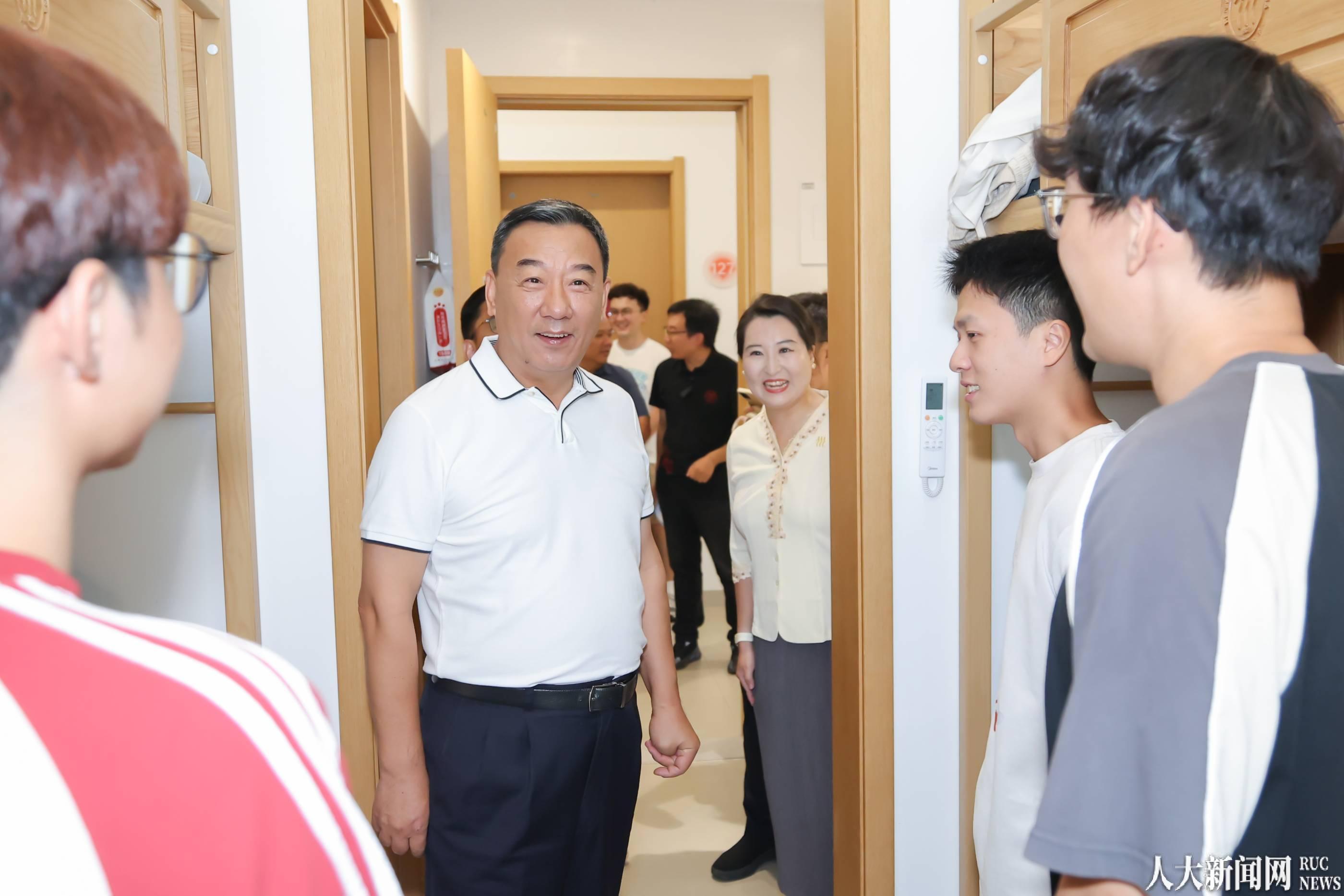 “欢迎你们在求学生涯的新起点,来到‘世界一流、北京最美、独具风格、人大气派’的新时代示范校园”,张东刚勉励新生珍惜青春韶华、勇担时代重任,在中国式现代化的伟大实践中扎实开展学术研究,为建构中国自主的知识体系作出应有贡献。在北二学生公寓,张东刚与来自经济学院、应用经济学院、和平与发展学院的新生深入交谈,询问对学习环境、住宿条件、公共空间的满意度。他表示,学校将从思想引领、学业支持、心理关怀、实践锻炼、文化浸润、安全保障等多维度协同支撑学生全面发展,将通州校区打造成为新时代育人高地。